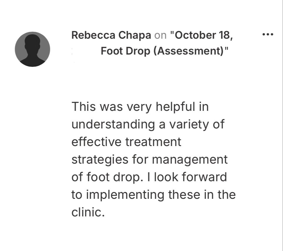 This is more than a “foot drop overview”- it’s a complete, evidence-based system you can immediately translate into clinical results.