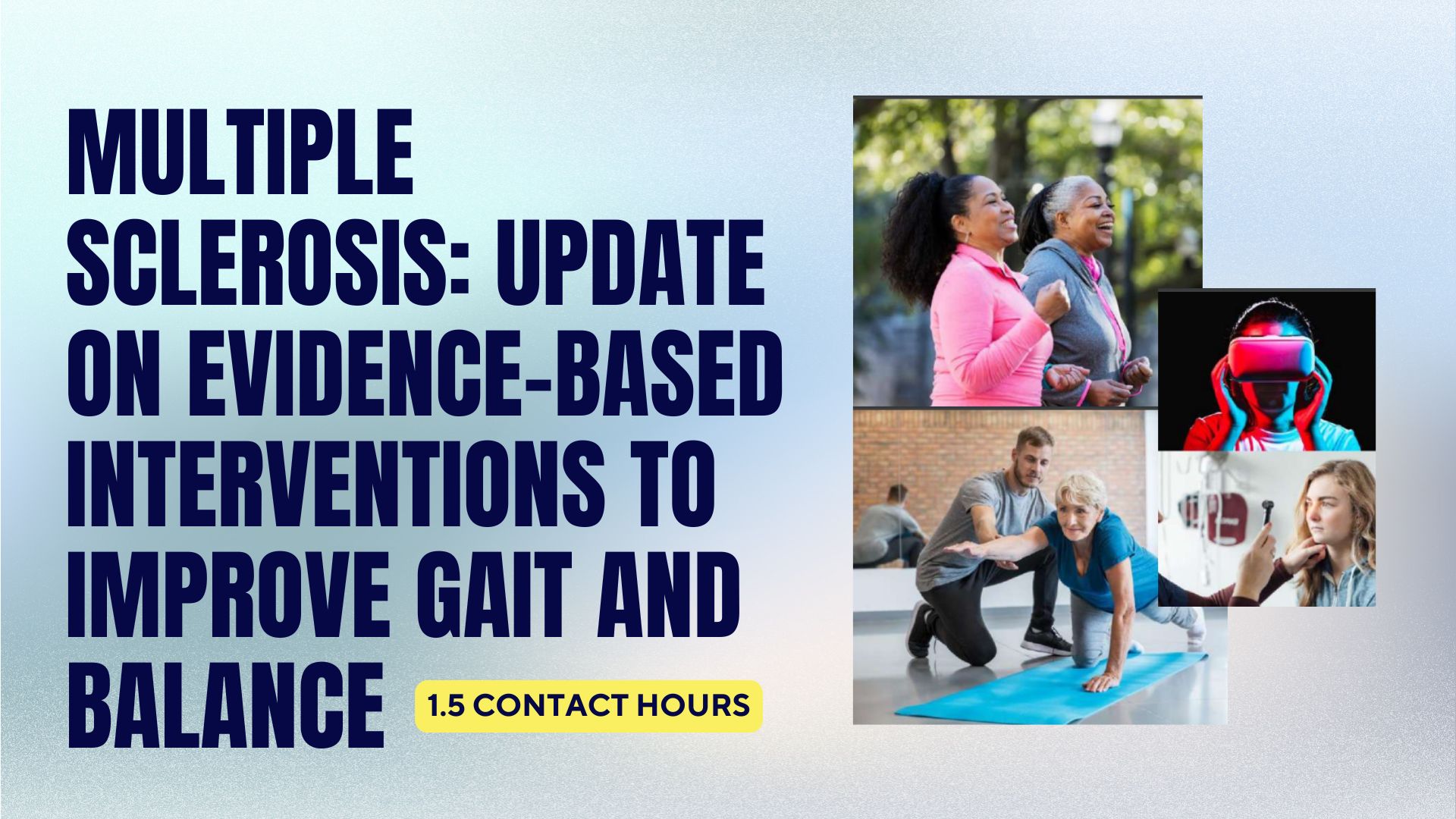 In this interactive 90-minute webinar, current and emerging evidence will be presented showcasing evidence-based interventions to address specific issues in gait and balance experienced by pwMS.